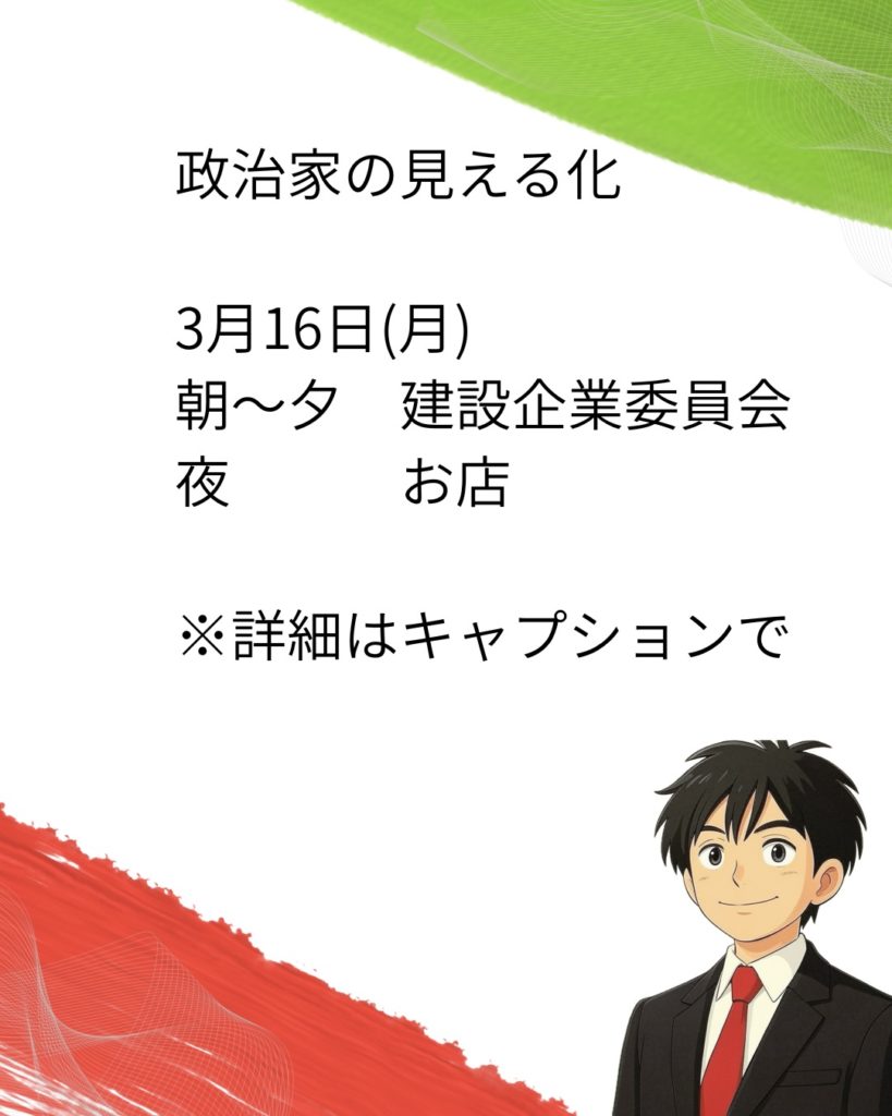 ※政治家の見える化とは、政治家が日々何しているかをプライベートや兼業含め可視化する目的です