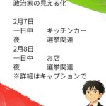- 政治家の日常 2月2日(月)政治家の見える化 2月2日(月)一日中 選挙関係夜 お店 視察について支援業界や団体に限定するのではな… 続きを読む: 政治家の日常 2月2日(月)