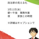 - 政治家の日常 3月10日(火)政治家の見える化 3月10日(火)朝〜午後 事務作業夜 お店 自宅での作業って誘惑が多すぎて困るテレビ、X… 続きを読む: 政治家の日常 3月10日(火)