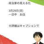 - 政治家の日常 3月28日(土)政治家の見える化 3月28日(土)一日中 お店 事務作業 子どもとの関係性友達のような親子、師弟のよ… 続きを読む: 政治家の日常 3月28日(土)