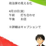 - 政治家の日常 4月9日(木)政治家の見える化 4月9日(木)午前 打ち合わせ午後 事務作業夜 意見交換 先日設立が発表されたみらい… 続きを読む: 政治家の日常 4月9日(木)