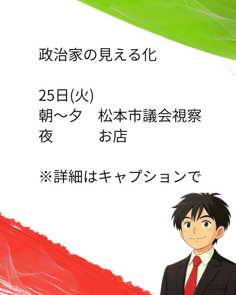 ※政治家の見える化とは、政治家が日々何しているかをプライベートや兼業含め可視化する目的です