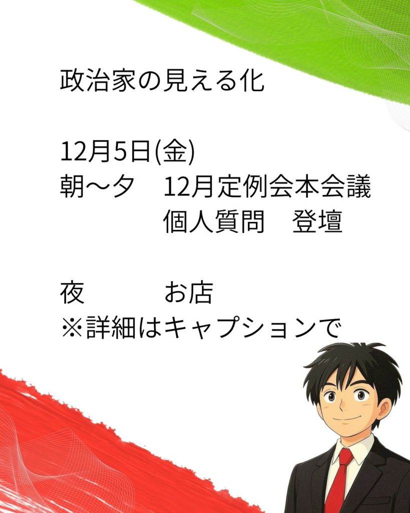 しかし、定例会冒頭の挨拶でも触れさせていただきましたが、ただの要望を質問するのではなく、具体的な事例や参考自治体を紹介しながら私が目指す【提案型議員】として質問できたのではないかと思います。