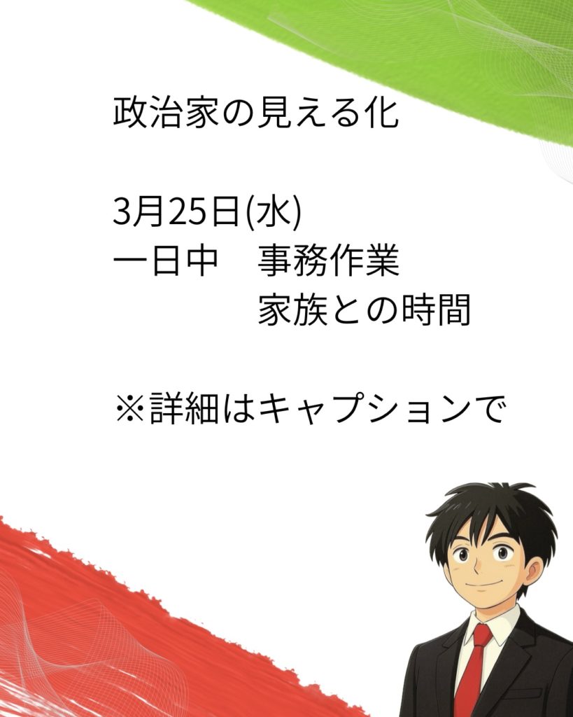 ※政治家の見える化とは、政治家が日々何しているかをプライベートや兼業含め可視化する目的です